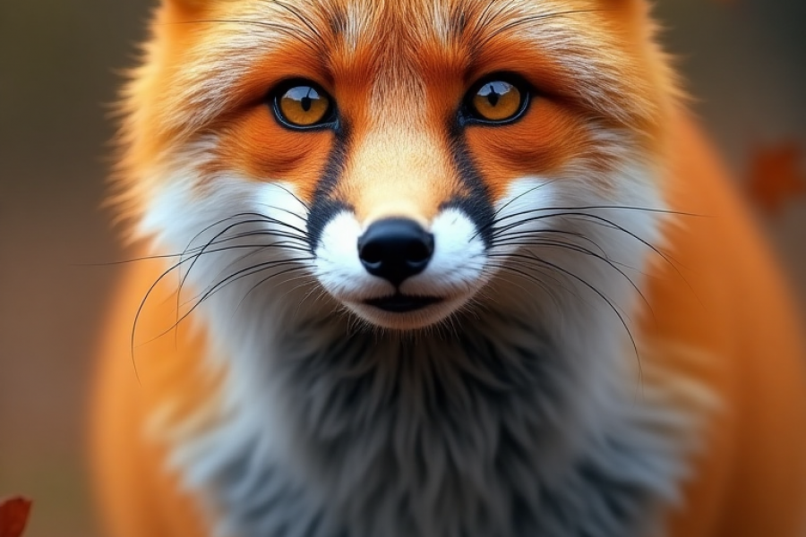работа выполнена с использованием нейросетей.Портрет рыжей лисы на фоне осеннего пейзажа