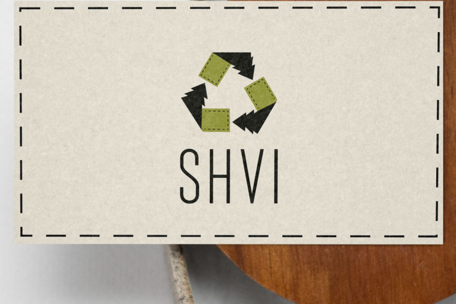 Логотип был придумал дл ательн, которое занимается пошивом и перепошивом ождежды. В знаке соединены элементы от recycle (разумное потребление), елки (как элемент сохранение природы) и швы (прямая отсылка к ателье)
