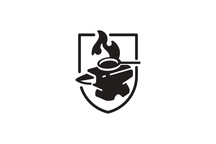 Логотип с раскаленной наковальней и сковородой. Подойдет для фаст-фуда, бургерных, стейк-хаусов, кафе и ресторанов с брутальной тематикой. Подбор написания и цвета входит в стоимость.