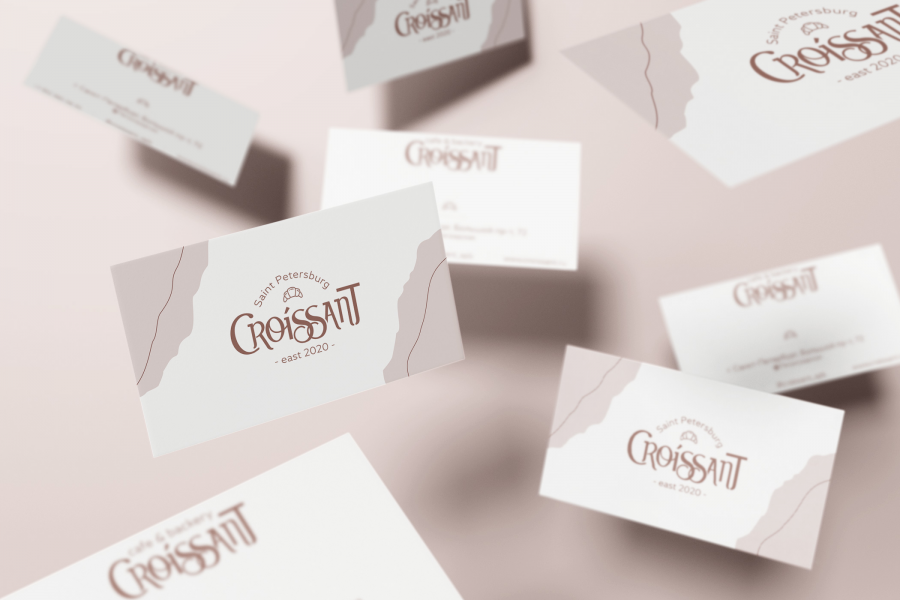 Были добавлены дата основания (2020г), локация (Санкт-Петербург) и утончённый миниатюрный круассанчик - изюминка логотипа.