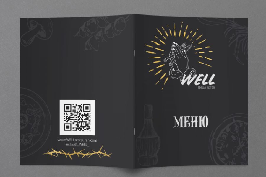 Готовый логотип и меню для ресторана. Меню небольшое, состоит из трех страниц вместе с обложкой.
