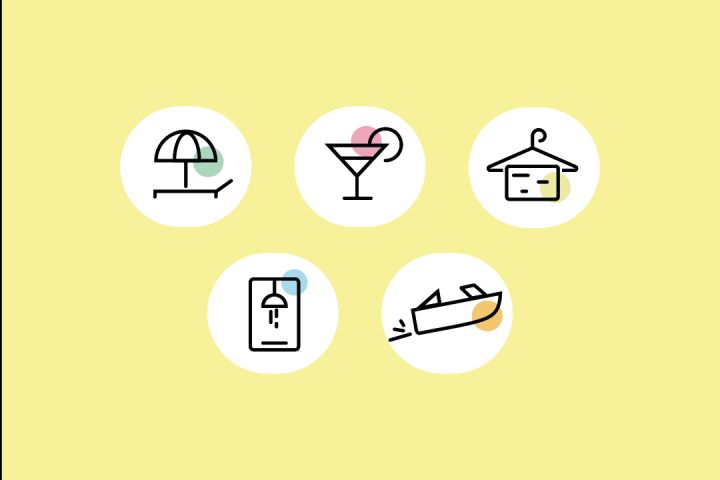 Логотип разработан специально сферы услуг отдыха , иконки дополнят стиль и атмосферу базы отдыха, а визитки оставляют впечатление на долгое время. Лаконичный и интересный дизайн. Данные иконки означают: пляж, бар, душ, гардеробная, прокат лодок.
