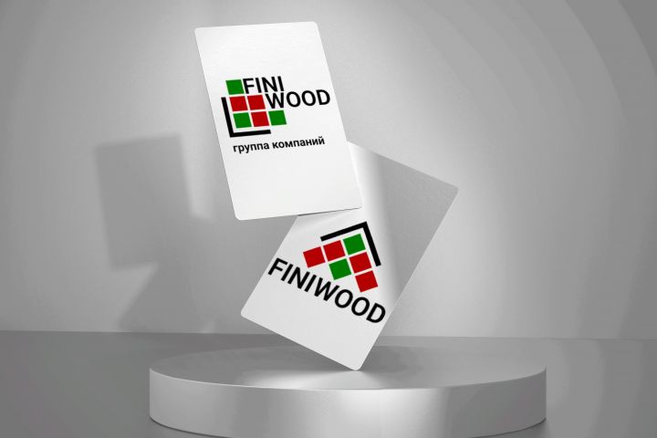 Логотип включает в себя название (отделка деревом)+графический знак (под крышей дома буквы f+w)