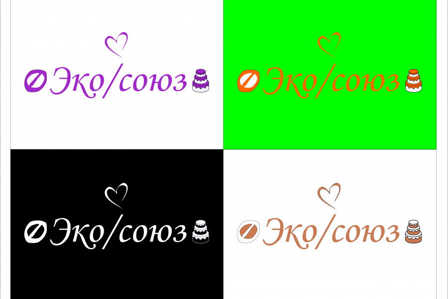 Логотип Эко/союз был предоставлен для продуктов Продукты питания (снеки, орехи, кондитерские изделия) на нем изображен Текст Эко/союз красивым шрифтом а между ним изображение ореха и торта что соответствует тематике а связывает их икона сердца что все сделано с любовью логотип представлен в 4 вариантах он был сделан с помощью CorelDRAW (или Корел Дро) — это популярный графический редактор векторной графики.