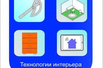 На логотипе изображены технология интерьера измерка, интерьер дома, полка, управление умным домом с помощью вай фая что обозначает строительство домов