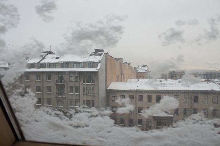 Мансардное окно на 8 этажа и крыши Санкт-Петербурга