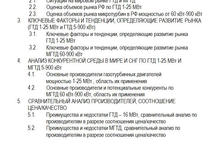 Маркетинговое исследование рынка газотурбинных двигателей мощностью