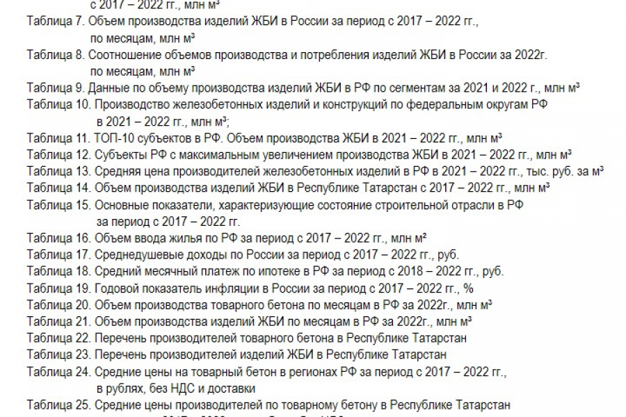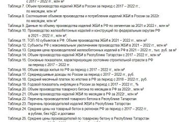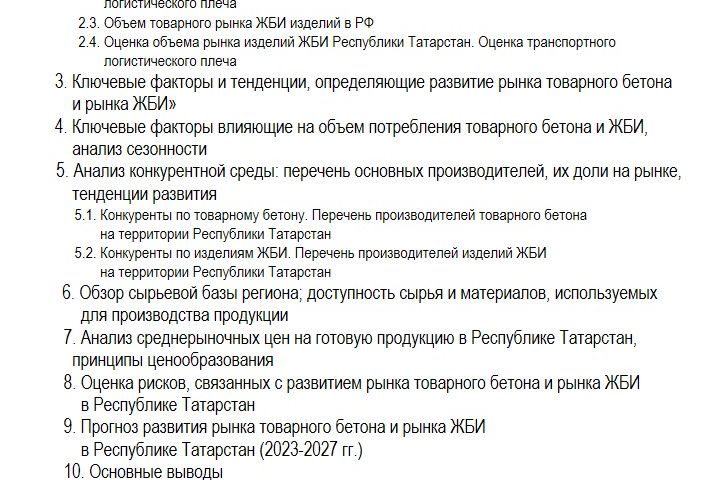 Продается Маркетинговое исследование рынка товарного бетона и железобетонных изделий (ЖБИ) в Республике Татарстан, исследование проведено в 2023 году.