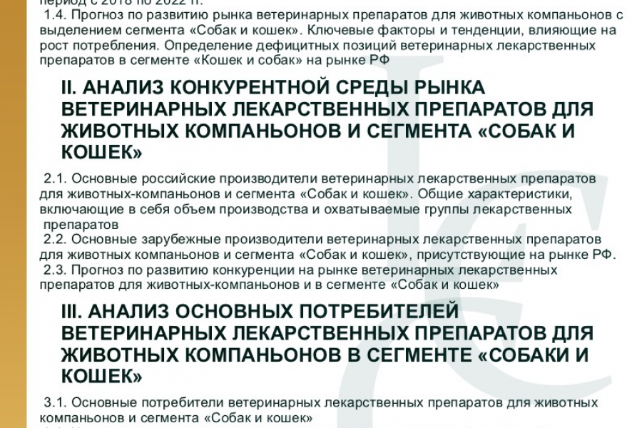 Продаю: Маркетинговое исследование рынка ветеринарных препаратов для собак и кошек