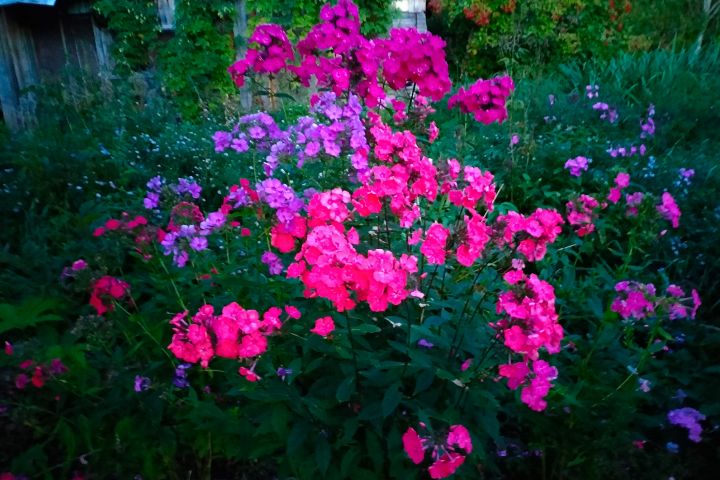 Многолетние флоксы цветут вечером в саду