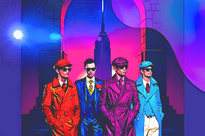 постер "Мужчины на фоне арки" отлично подойдёт для оформления магазинов, кафе, кофеен, ресторанов, ночных заведений. (были использованы нейросети).