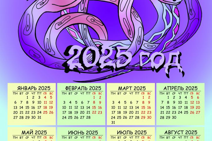 Календари на 2025 год, электронный файл, вами по желаю могут быть распечатаны как в формате А4, так и в формате А3, либо использованы в электронном формате