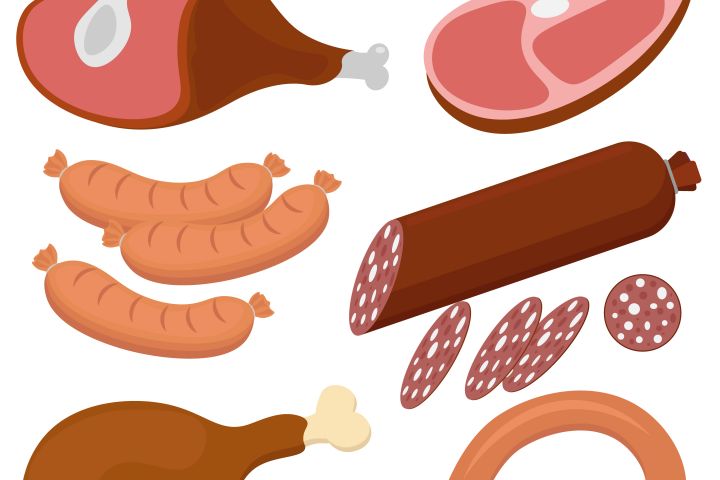 Векторная иллюстрация на тему мясных продуктов.