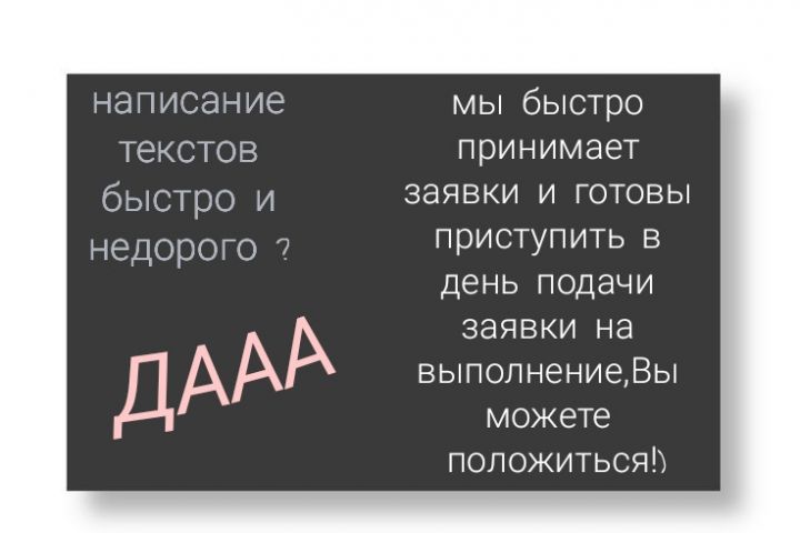 Здравствуйте, меня зовут Софья, я уже долгое время занимаюсь написанием текстов и статей. Могу написать текст, как для отзыва, так и для статьи. Стандартная работа со статьями-средний размер не более 10000 символов.