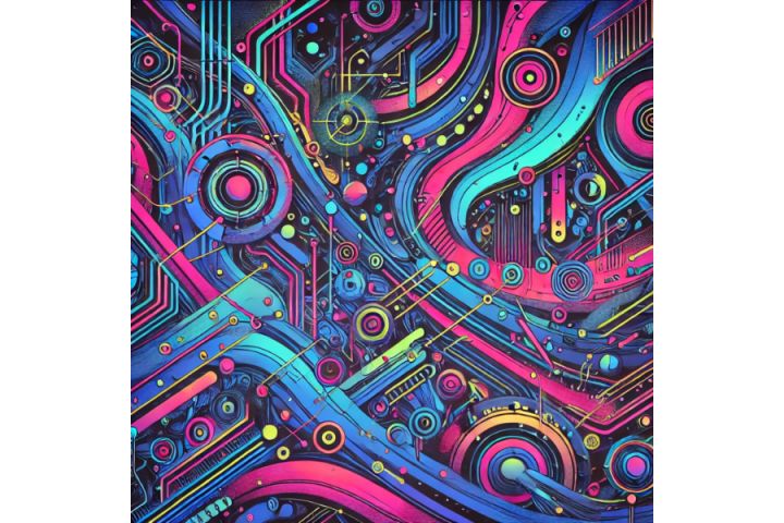 Футуристическая эстетика. Иллюстрация в стиле дудлинга. Интерьерная картина. Декор для дома.