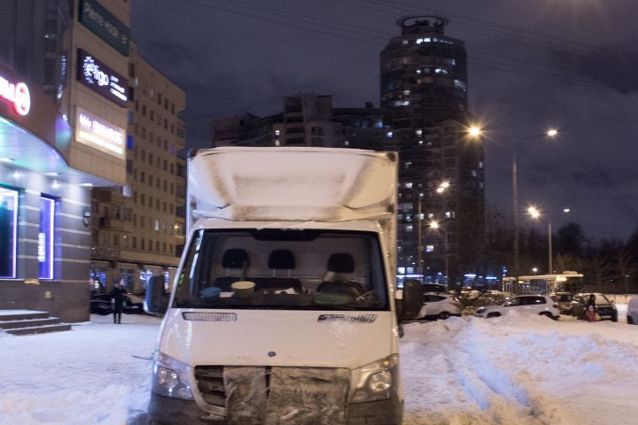 Продаю: Ночная улица зимой, автомобиль "Газель" на зимней улице Одоевского в Санкт-Петер
