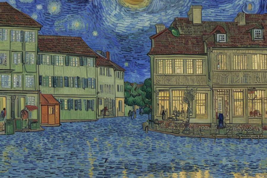 Городской пейзаж. Ночной город в стиле Ван Гога.