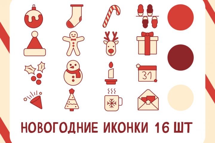 С радостью представляю вам 16 новогодних иконок, которые вы можете свободно редактировать. Эти иконки отличаются простотой и плоской формой, что делает их удобными в использовании. Предоставляю иконки в формате svg, eps, ai
