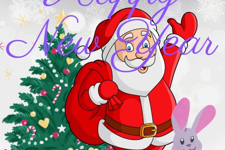 Новогодняя гифка - поздравление с анимацией - кроликом, что шевелит ушами.