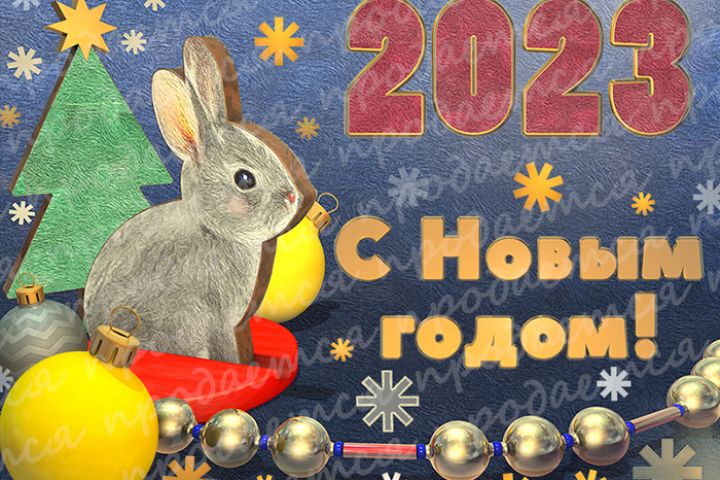 Новогодняя открытка. Год Кролика. 2023 В готовом варианте в наличии есть форматы: 2000*1500_300 точек на дюйм 1025*769_72 точек на дюйм Возможна доработка под Ваши надписи, нанесение Вашего логотипа