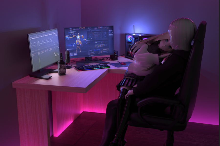 Обложка на музыкальный проект hyperpop в формате 3D Персонажи сделаны в Vroid-studio , сцена в Blender, эффекты добавлены в Photoshop
