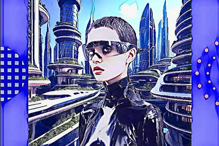 постер "ОЧКИ И ФУТУРИСТИЧНЫЙ ГОРОД" подойдёт для оформления кафе, кофеен, ресторанов. (были использованы нейросети)