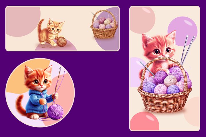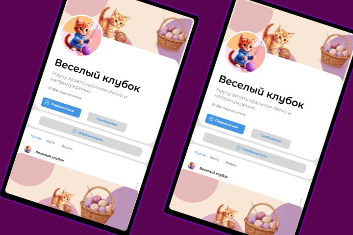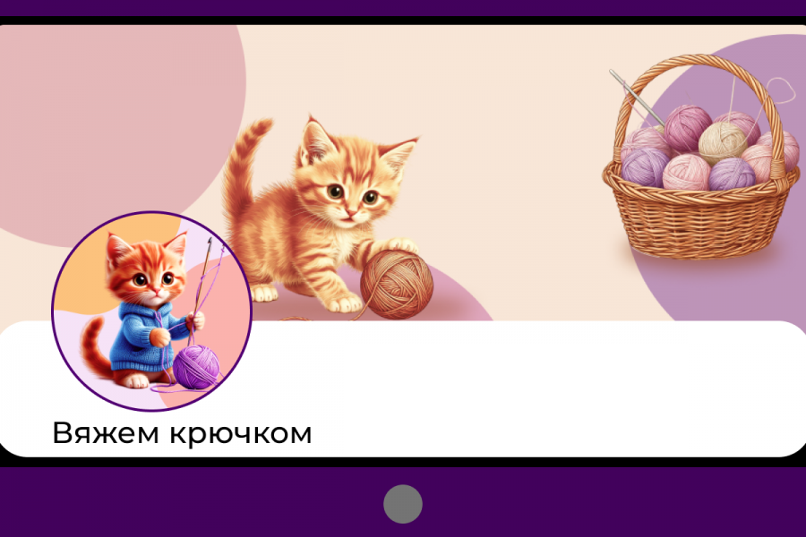 Предлагаю для оформление группы ВК на тему "Вязание": - статичная обложка - живая обложка - аватар. Создано в Figma. Использованы нейросети для создания элементов изображений.