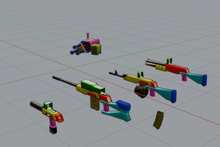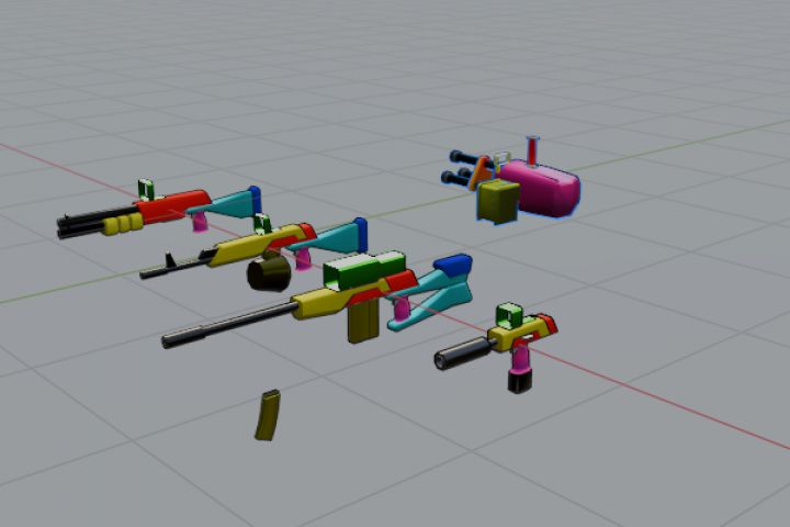 Набор Лоу по ли оружие с черной обводкой для мобильных игр . раскрашены цветами вершин .три материала: основной,металлик,свечение. 8017 треугольников(без черного контура вес моделей ок. 4000 треуголок но требует- доработки ).