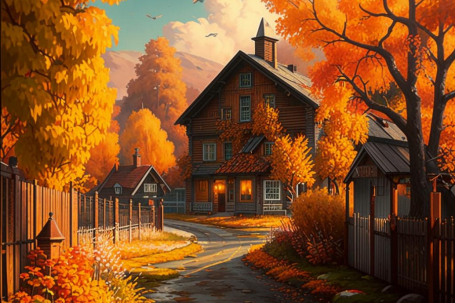 домик в осеннюю пору. Создано в kandinsky 3.1
