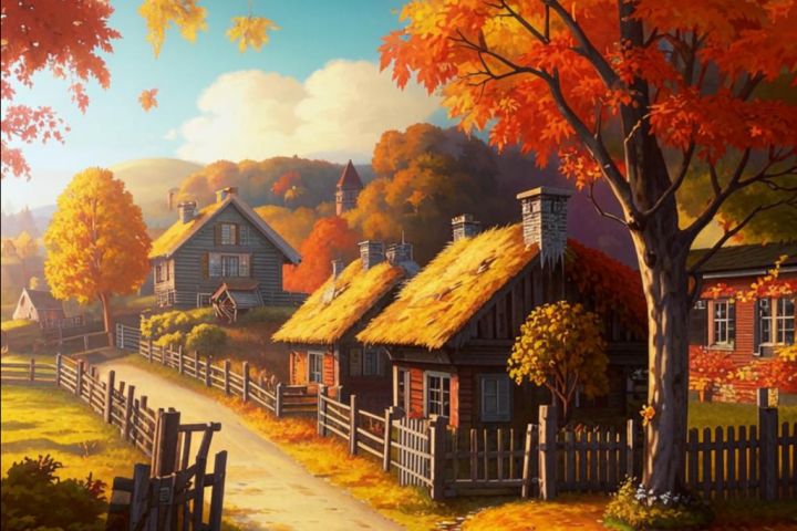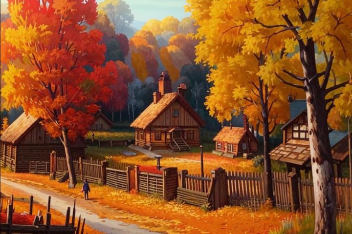 Продаю: осенняя деревня - готовая работа на продажу :13061
