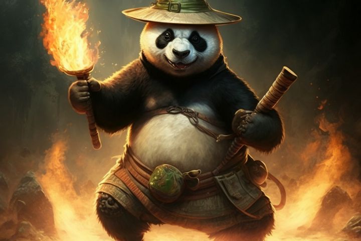 панда, каратэ, , злой, игра, бой, соломенная шляпа, огонь, возду...