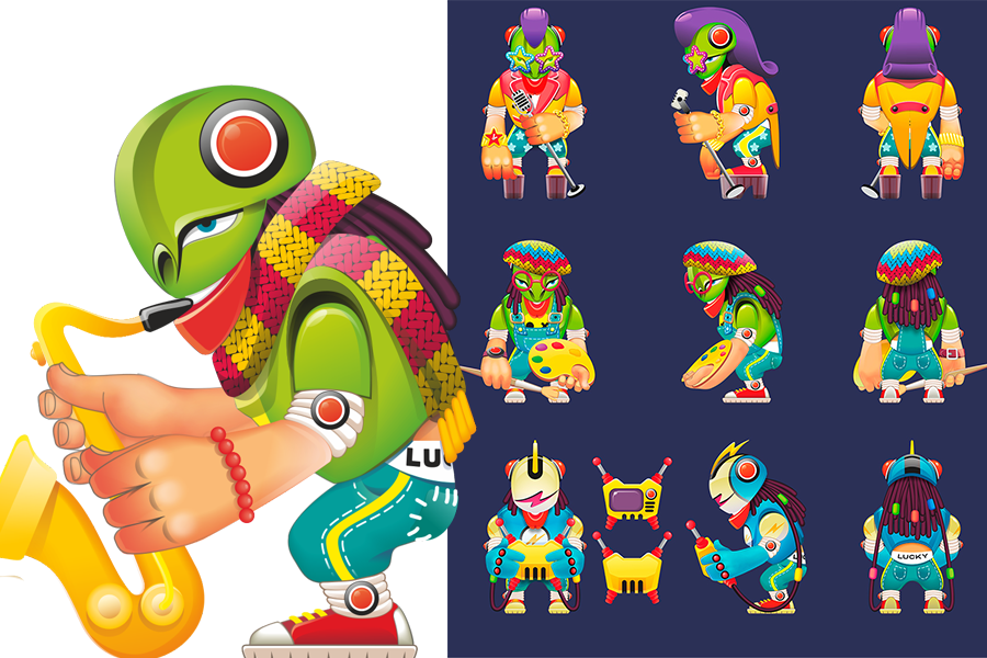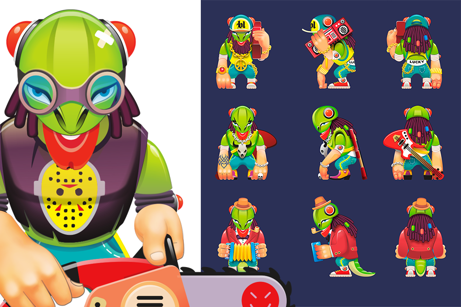 Эскизы персонажа в разных стилистиках. Варианты применения: 1. Фирменный персонаж (Например, какого-нибудь стебового журнала. Или рекламного агентства) 2. Коллекционные игрушки 3. GameDev 4. Да что угодно.. Всего вариантов персонажа 10.