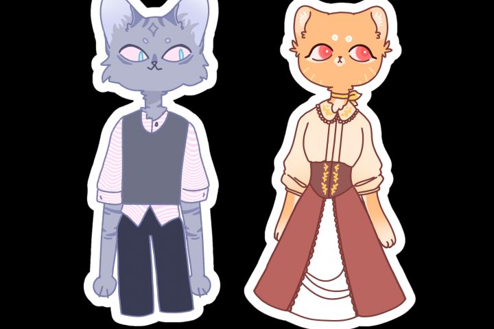 Персонажи котики для твоей истории. Формат стикера - белый контур