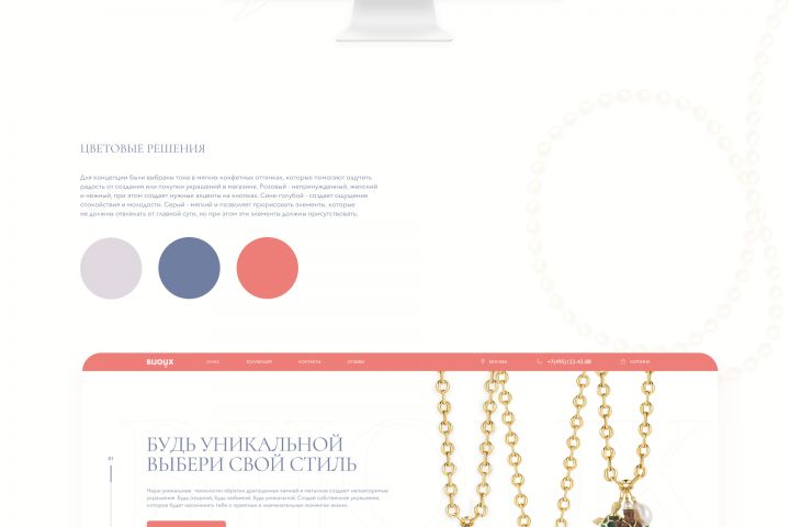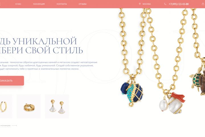Милый, чистый дизайн первого экрана, который задаст настроение всему сайту или лендингу по продаже ювелирных изделий.