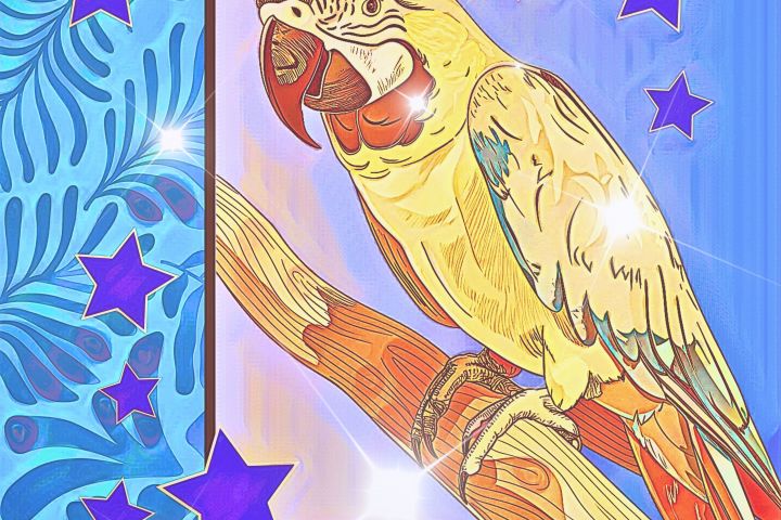 "ПОПУГАЙ И ЗВЕЗДЫ" композиция прекрасно подходит для оформления кафе, кофеен, ресторанов, ночных заведений. (были использованы нейросети).