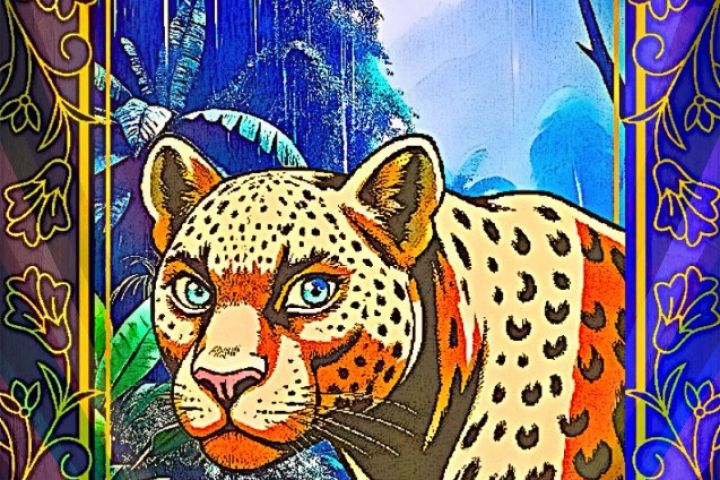 постер "ЯГУАР В ДЖУНГЛЯХ" композиция отлично подходит для оформления офисных пространств, магазинов, кафе, кофеен, ночных заведений. (были использованы нейросети).
