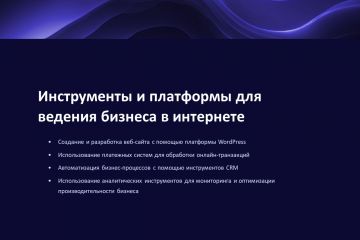 Вы получите структурированное и понятное руководство по всем аспектам ведения бизнеса в интернете. Презентация состоит из слайдов с графиками, схемами и примерами.