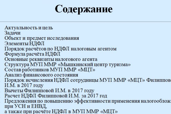 Презентация по дипломной работе: Механизм исчисления и взимания НДФЛ у источника выплаты на примере МУП ММР «Мышкинский центр туризма»