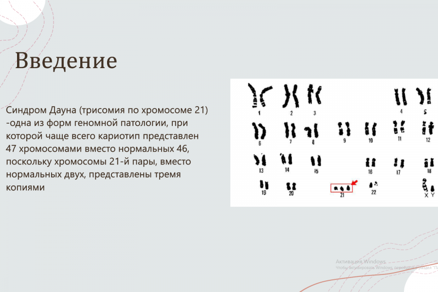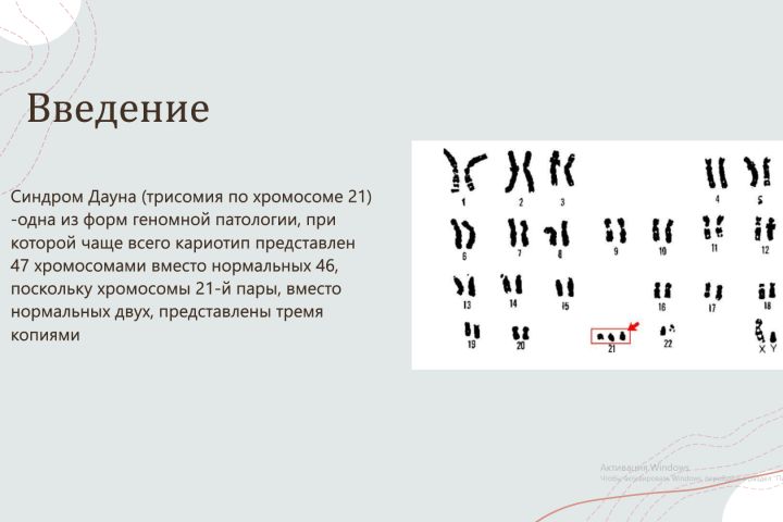 Презентация "Синдром Дауна". Включает в себя медицинскую терминологию, большое количество картинок. Всего в презентации 18 слайдов.