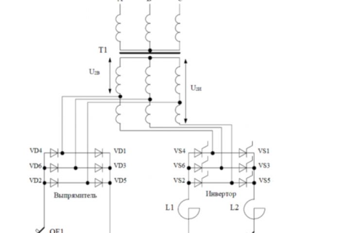 1. Нарисовать схему параллельного включения выпрямителя и инвертора, а также структурную схему системы управления тиристорами.