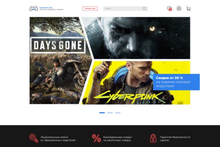 Ссылка на полную презентацию - https://www.behance.net/gallery/122363533/GamePlay-Shop-internet-magazin-cifrovyh-tovarov