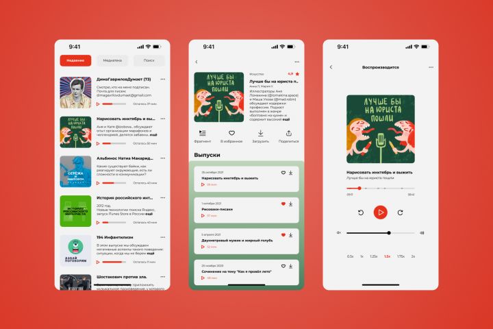 Современный и удобный дизайн мобильного приложения для прослушивания подкастов. Посмотреть полный кейс: https://www.behance.net/gallery/150622771/Mobile-app-Podcasts