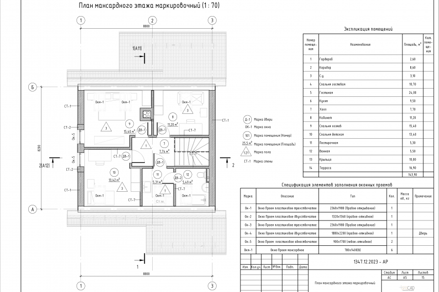 Проект дома с мансардным этажом общей площадью 144 кв.м.