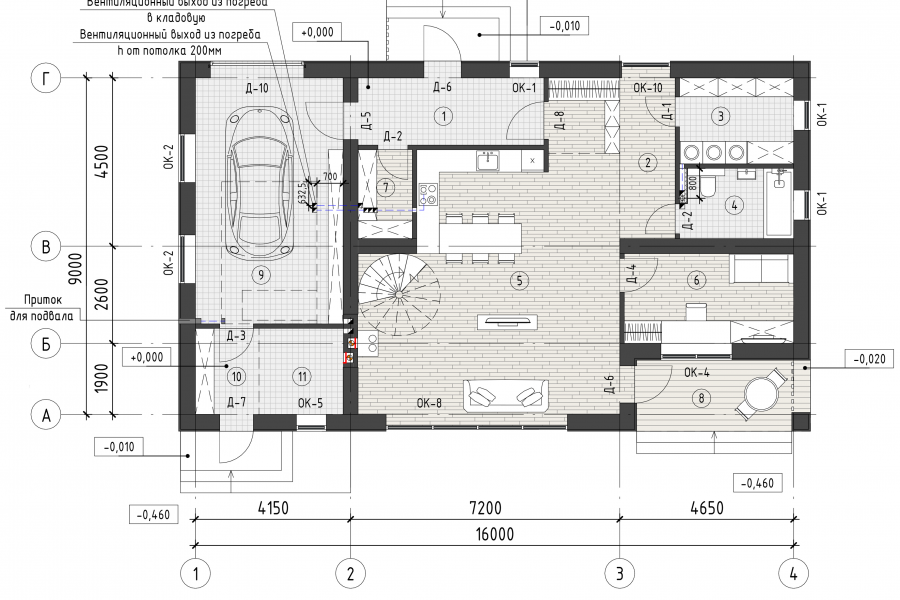 • Разрезы по фундаменту