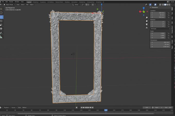 модель резной рамы зеркала для станка с ЧПУ