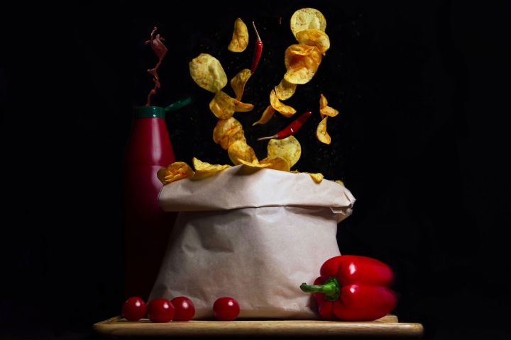 Творческая фотосъемка чипсов в движении. В оригинале качество лучше