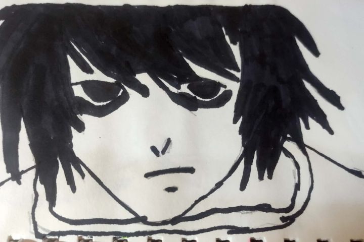 Рисунок Эла Лоулайта из аниме "Тетрадь смерти", выполненный чёрным маркером