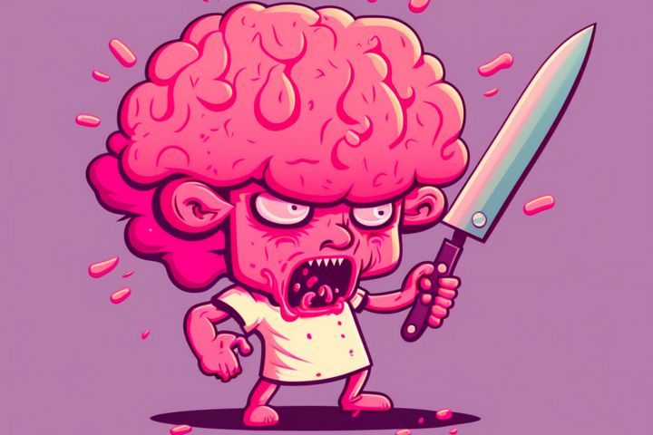 Продаю: розовый мозг с инкрустированным кухонным ножом, мультяшный стиль - готовая работа на продажу :8381