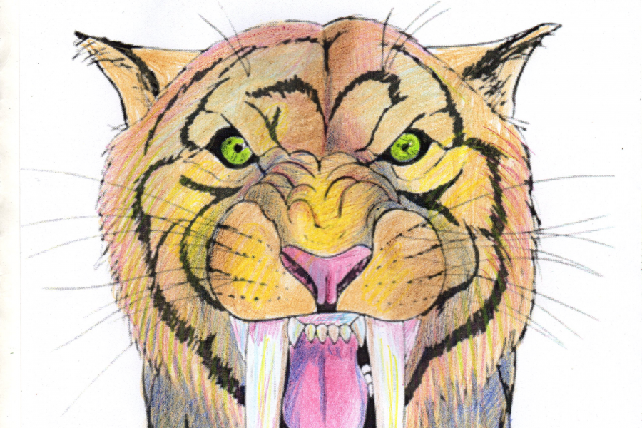 Рисунок саблезубого тигра - отличный вариант для тех кто интересуется каменым веком. Может быть отличной иллюстрацией к учебнику или принтом для одежды