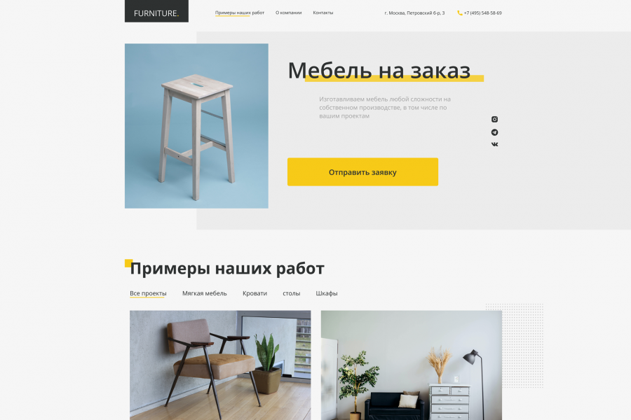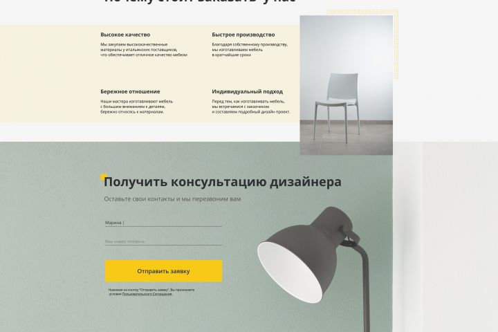 Здравствуйте, продаю свой разработку - Продающий лендинг авторской мебели, готова внести правки, согласно вашему ТЗ. Если нужно, сделаю адаптации под мобильные устройства.